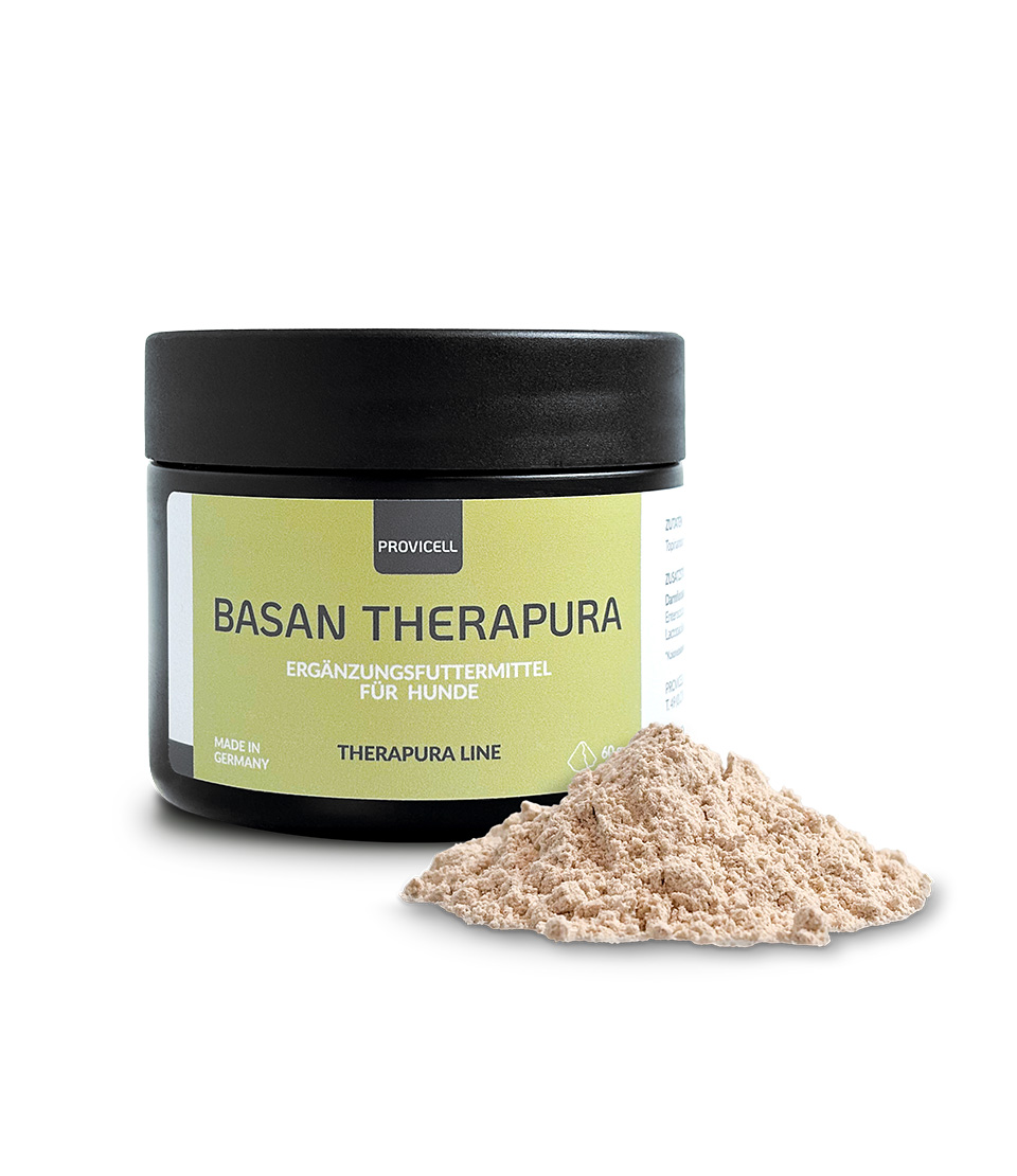 Basan Therapura ist ein Probiotikum für Hunde. Es enthält lebende Bakterienstämme sowie lösliche Ballaststoffe. Es liefert mit Maltodextrin und Oligofructose genau das, was Milchsäurebakterien unterwegs brauchen – eine pflanzliche Stärkung für ihren Weg durch den Verdauungstrakt bis in den Dickdarm.